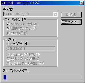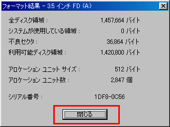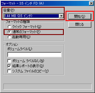 | 容量は1.44MB フォーマットの種類は 通常のフォーマットを選択します |